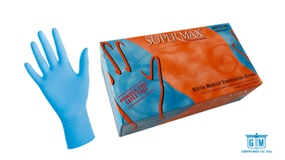 - Guantes de Examinación de Nitrilo Azul Texturados fabricados 100% Nitrilo, libre de látex y sin talco.